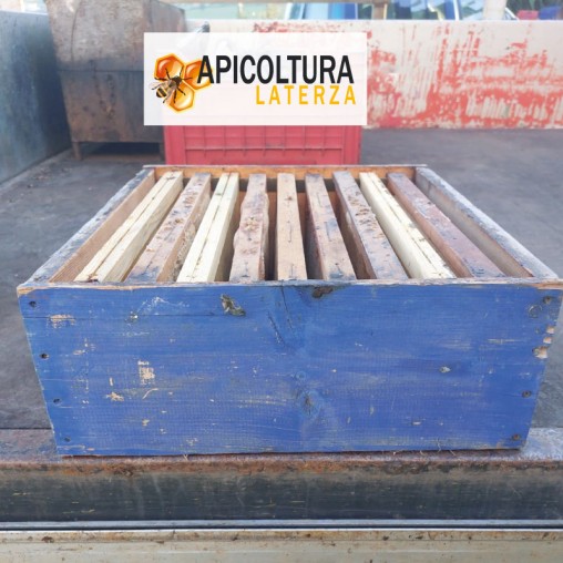 Die Honigräume bestehen aus 9 Rähmchen, haben nie Brut enthalten und sind ausgebaut.