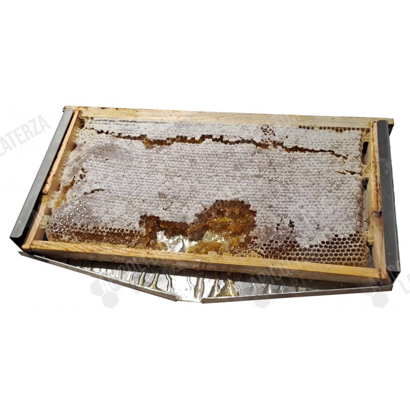Nos rayons proviennent directement des hausses des ruches plongées dans la nature préservée des Pouilles. Contrairement aux miels traditionnels, ce produit ne subit aucune extraction mécanique, filtration ou pasteurisation. Chaque cadre est prélevé avec soin, inspecté et emballé à la main, garantissant que le miel reste scellé dans sa cire d’origine — un sceau de qualité et de fraîcheur que seule la ruche peut offrir.